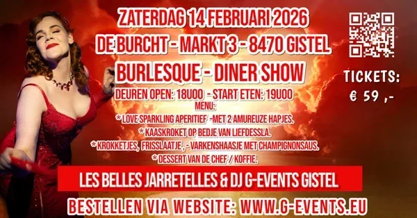 * reservaties van enkel burlesque show zullen aangevuld worden aan de tafels achter de diner personen.