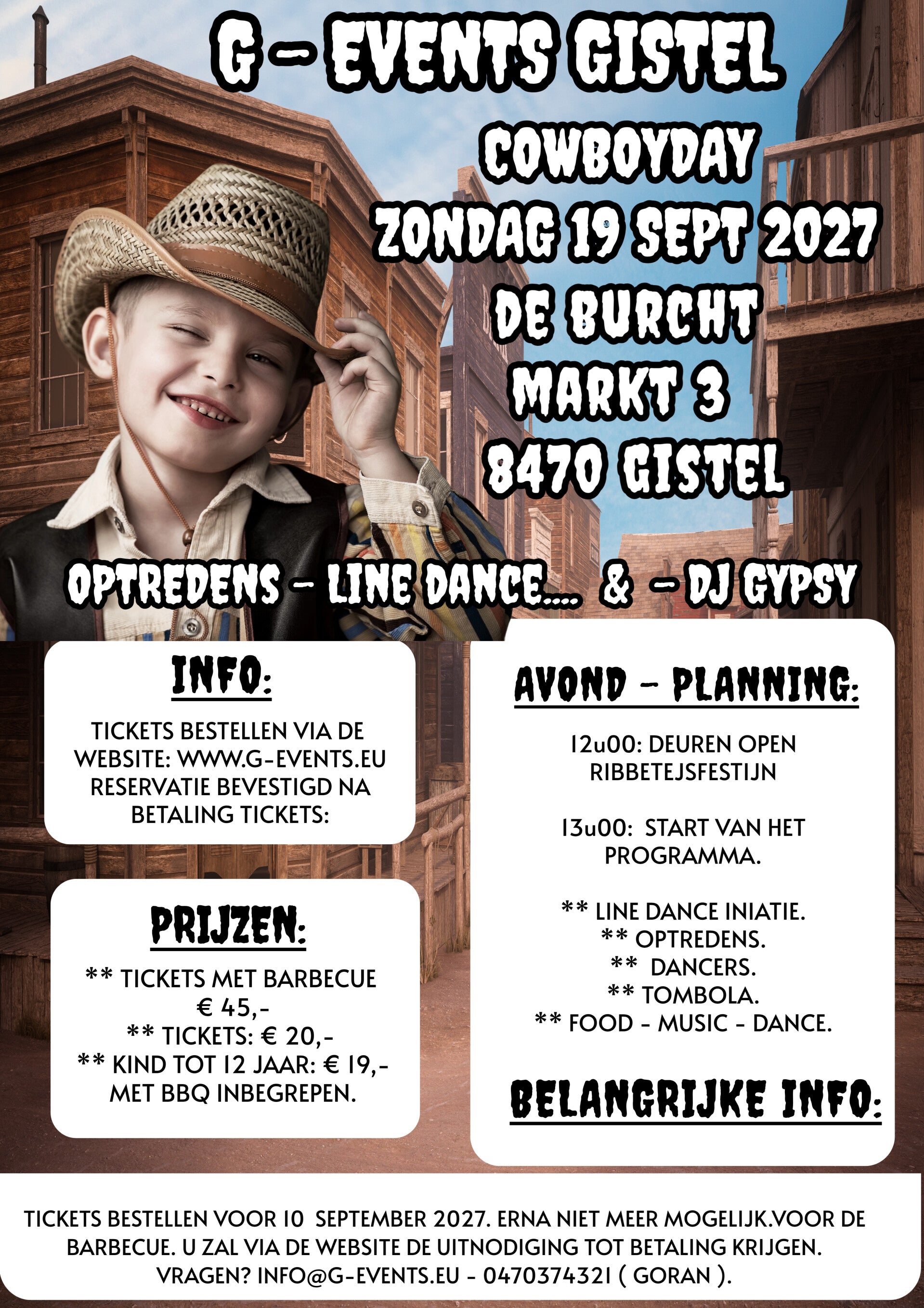 We gaan opnieuw de western naar Gistel halen met een mooi gevuld programma.