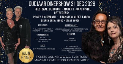 ZONDAG 31 DECEMBER 2028: OUDJAARSAVOND DINER-SHOW PEGGY & GIOVANNI & FRANCIS & MIEKE FABER.